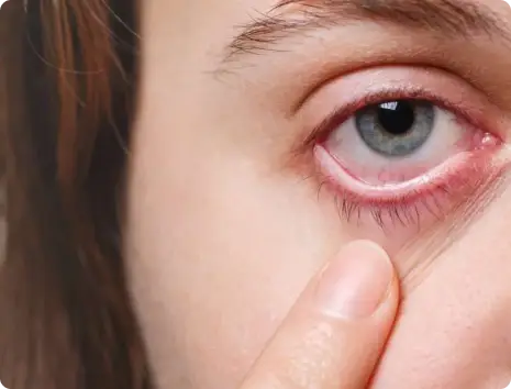 Reações que afetam os olhos, causando sintomas como coceira, vermelhidão e lacrimejamento.